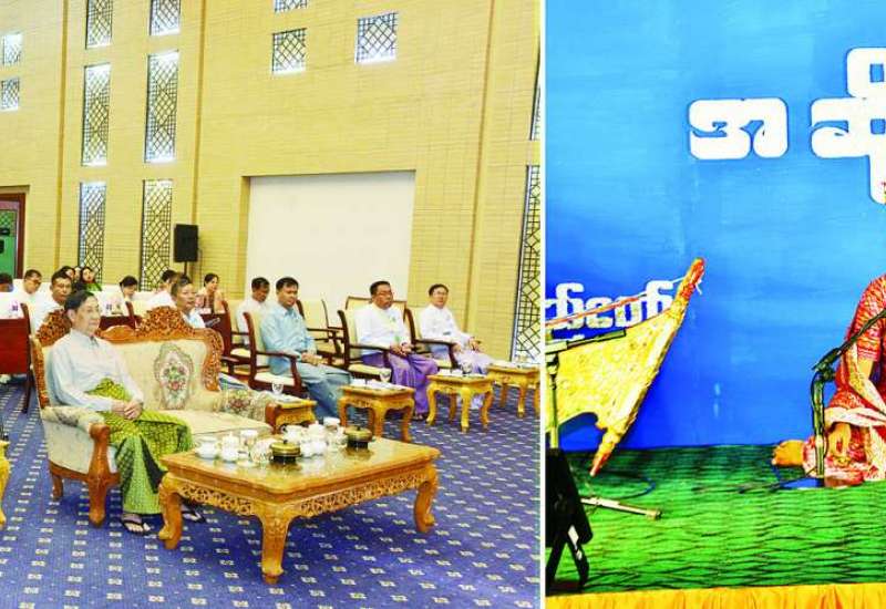 နိုင်ငံတော်စီမံအုပ်ချုပ်ရေးကောင်စီဥက္ကဋ္ဌ နိုင်ငံတော်ဝန်ကြီးချုပ် ဗိုလ်ချုပ်မှူးကြီး မင်းအောင်လှိုင်နှင့် ဇနီးဒေါ်ကြူကြူလှတို့သည် ယနေ့မွန်းလွဲပိုင်းတွင် မြန်မာအပြည်ပြည်ဆိုင်ရာ ကွန်ဗင်းရှင်းဗဟိုဌာန(၂)၌ ကျင်းပလျက်ရှိသည့် (၂၅)ကြိမ်မြောက်ငွေရတုအထိမ်းအမှတ် မြန်မာ့ရိုးရာယဉ်ကျေးမှုအဆို၊ အက၊ အရေး၊ အတီးပြိုင်ပွဲ(ဗဟိုအဆင့်)ပြိုင်ပွဲယှဉ်ပြိုင်နေမှုများကို တက်ရောက်ကြည့်ရှုအားပေးသည်။