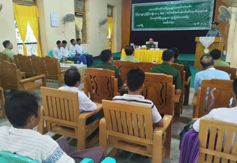 တိုင်းရင်းသားလက်နက်ကိုင်အဖွဲ့နယ်မြေအတွင်း သင်တန်းများတက်ရောက်ခဲ့ပြီး ပြစ်မှုကျူးလွန်ခြင်းမရှိခဲ့သည့် ဥပဒေဘောင်အတွင်းဝင်ရောက်လာသော PDF အဖွဲ့ဝင်များအား ပြန်လည်ကြိုဆိုလက်ခံပွဲကို ယနေ့နံနက်ပိုင်းတွင် မကွေးတိုင်းဒေသကြီး သရက်မြို့မြို့နယ်အထွေထွေအုပ်ချုပ်ရေးဦးစီးဌာန အစည်းအဝေးခန်းမ၌ပြုလုပ်ရာ အလယ်ပိုင်းတိုင်စစ်ဌာနချုပ်မှ တာဝန်ရှိသူများ၊ ၎င်းတို့၏မိဘအုပ်ထိန်းသူများ တက်ရောက်ကြသည်။