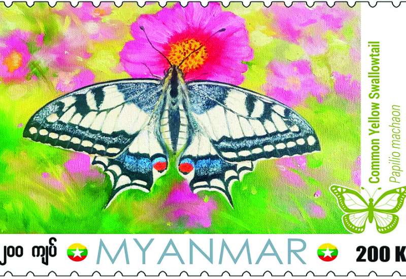ပို့ဆောင်ရေးနှင့်ဆက်သွယ်ရေးဝန်ကြီးဌာန မြန်မာ့စာတိုက်လုပ်ငန်းမှ သယံဇာတနှင့် သဘာဝပတ်ဝန်းကျင်ထိန်းသိမ်းရေးဝန်ကြီးဌာနက မြန်မာနိုင်ငံ၌ တွေ့ရှိရသော လိပ်ပြာမျိုးစိတ်အဖြစ် မှတ်တမ်းတင်သဘောထားမှတ်ချက်ပြုထားသည့် “Common Yellow Swallowtail ” လိပ်ပြာပုံ ၂၀၀ ကျပ်တန် စာပို့တံဆိပ်ခေါင်းသစ်တစ်မျိုး အား ၂၀၂၄ ခုနှစ် ဧပြီ ၁၀ ရက်၊ မြန်မာ သက္ကရာဇ် ၁၃၈၅ ခုနှစ် တန်ခူးလဆန်း ၂ ရက် (ဗုဒ္ဓဟူးနေ့)နံနက် ၉ နာရီခွဲမှ စတင်၍ နေပြည်တော်ဗဟိုစာတိုက်ကြီး၊ ရန်ကုန်စာတိုက်ကြီး၊ မန္တလေးစာတိုက်ကြီးတို့နှင့် တိုင်းဒေသကြီး/ ပြည်နယ်များရှိ စာတိုက်ကြီးများတွင် တစ်ပြိုင်တည်းရောင်းချပေးသွားမည်ဖြစ်သည်။