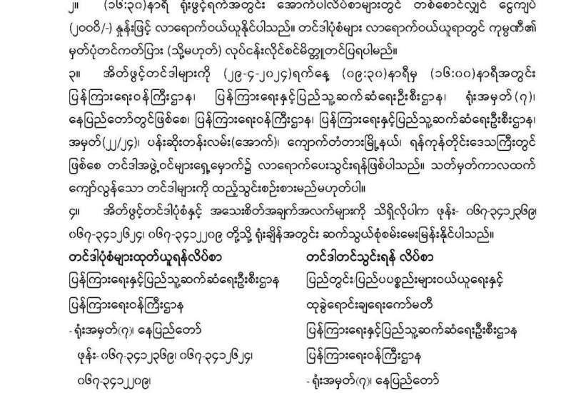မြန်မာနိုင်ငံ အမျိုးသားလူ့အခွင့်အရေးကော်မရှင်၏ အသိပညာ မျှဝေခြင်းအစီအစဉ် Knowledge Sharing Program အရ “အပြည်ပြည်ဆိုင်ရာ လူ့အခွင့်အရေး သဘောတူစာချုပ်များနှင့် ပြည်တွင်း ဥပဒေများ (International Human Rights Treaties And Domestic Laws)” ခေါင်းစဉ်ဖြင့် အသိပညာပေးဆွေးနွေးဟောပြောပွဲကို ယနေ့ မွန်းလွဲ ၁ နာရီတွင် မြန်မာနိုင်ငံ အမျိုးသားလူ့အခွင့်အရေးကော်မရှင် ရုံး Conference Room ၌ ကျင်းပသည်။