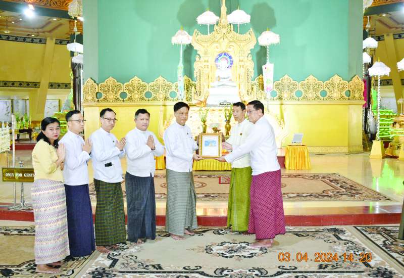 နိုင်ငံခြားရေးဝန်ကြီးဌာန၏ (၇၇) နှစ်မြောက် နှစ်ပတ်လည်နေ့ အထိမ်းအမှတ်အလှူအဖြစ် ဒုတိယဝန်ကြီး ဦးလွင်ဦး ဦးဆောင်သော ကိုယ်စားလှယ်များသည် ဥပ္ပါတသန္တိစေတီတော်မြတ်ကြီး ပထမဖောင်းရစ်တွင် ကပ်လှူပူဇော်ရန် လိုအပ်လျက်ရှိသည့် ရွှေစင်ရွှေပြား တစ်ချပ်လျှင် ငွေကျပ် ၂၅ သိန်းနှုန်းဖြင့် ရွှေစင်ရွှေပြား ခုနစ်ချပ်နှင့် နဝကမ္မအလှူတော် ငွေကျပ် ခုနစ်သိန်း၊ လှူဒါန်းမှု စုစုပေါင်းတန်ဖိုး ငွေကျပ် ၁၈၂၀၀၀၀၀ ကို ဥပ္ပါတသန္တိစေတီတော်မြတ်ကြီးရှိ ဂေါပကအဖွဲ့ထံသို့ ယနေ့သွား ရောက်လှူဒါန်းသည်။