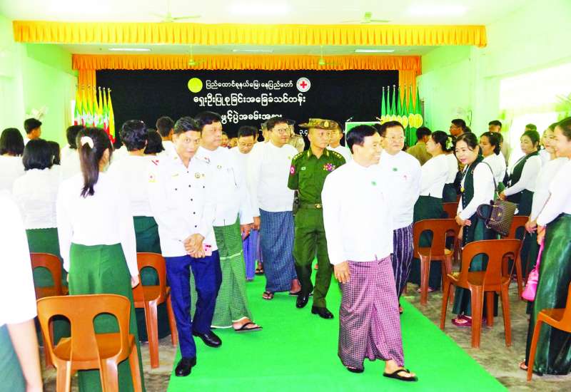 နေပြည်တော် ကြက်ခြေနီကြီးကြပ်မှုကော်မတီနှင့် နေပြည်တော်ပညာရေးမှူးရုံးတို့ ပူးပေါင်းဖွင့်လှစ်သည့် ရှေးဦးပြုစုခြင်းအခြေခံသင်တန်းဖွင့်ပွဲ အခမ်းအနားကို ယနေ့နံနက် ၈ နာရီခွဲတွင် ဇမ္ဗူသီရိမြို့နယ် အမှတ် (၁၁) အခြေခံပညာအထက်တန်းကျောင်း၌ ကျင်းပရာ နေပြည်တော်ကောင်စီဥက္ကဋ္ဌ ဦးသန်းထွန်းဦး၊ နေပြည်တော်ကောင်စီဝင်များ၊ နေပြည်တော်အဆင့် ဌာနဆိုင်ရာတာဝန်ရှိသူများ၊ နေပြည်တော် ကြက်ခြေနီကြီးကြပ်မှုကော်မတီဥက္ကဋ္ဌနှင့် ကော်မတီဝင်များ၊ ခရိုင်/ မြို့နယ်အဆင့် ဌာနဆိုင်ရာများမှ တာဝန်ရှိသူများ၊ သင်တန်းနည်းပြ ဆရာ ဆရာမများနှင့် ကျောင်းသား ကျောင်းသူများ တက်ရောက်ကြသည်။