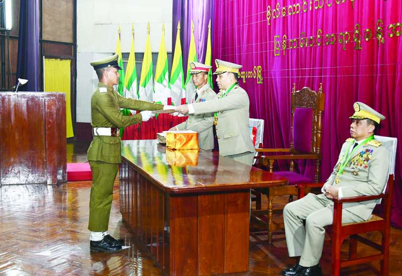 တပ်မတော်(ကြည်း)ဗိုလ်သင်တန်းကျောင်း (ဗထူး) ဗိုလ်လောင်းသင်တန်းအမှတ်စဉ် (၁၂၇) သီဟတပ်ခွဲ ပြန်တမ်းဝင်အရာရှိခန့်အပ်ခြင်းအခမ်းအနားကို ယနေ့နံနက်ပိုင်းတွင် တပ်မတော်(ကြည်း) ဗိုလ်သင်တန်းကျောင်း(ဗထူး) စစ်ရာထူးခန့်ထားရေး ခန်းမဆောင်၌ကျင်းပရာ ကာကွယ်ရေးဦးစီးချုပ် ရုံး(ကြည်း)မှ စစ်ရာထူးခန့်ချုပ် ဒုတိယဗိုလ်ချုပ်ကြီး လင်းအောင်၊ ဒုတိယတပ်မတော် လေ့ကျင့်ရေးအရာရှိချုပ် ဗိုလ်ချုပ် အောင်မျိုးသန့်၊ ကျောင်းအုပ်ကြီး ဗိုလ်မှူးချုပ် မျိုးဇော်ဝင်း၊ ကျောင်းဆင်းဗိုလ်လောင်းများ၊ ၎င်းတို့၏မိဘဆွေမျိုးများနှင့်နည်းပြများ တက်ရောက်ကြသည်။