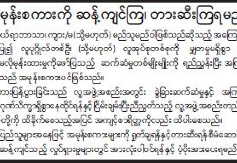 အကြမ်းဖက်မှုပပျောက်ရေးအတွက် ပြည်သူသို့ အသိပေးနှိုးဆော်ချက်