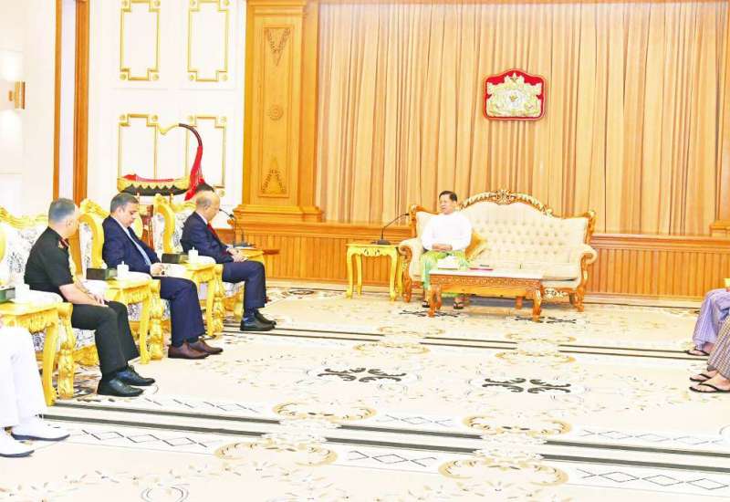 နိုင်ငံတော်စီမံအုပ်ချုပ်ရေးကောင်စီဥက္ကဋ္ဌ နိုင်ငံတော်ဝန်ကြီးချုပ် ဗိုလ်ချုပ်မှူးကြီး မင်းအောင်လှိုင်သည် တာဝန်ပြီးဆုံး၍ ပြန်လည်ထွက်ခွာမည့် မြန်မာနိုင်ငံဆိုင်ရာ အိန္ဒိယနိုင်ငံသံအမတ်ကြီး H.E. Mr. Vinay Kumar အား ယနေ့နံနက်ပိုင်းတွင် နေပြည်တော်ရှိ နိုင်ငံတော်စီမံအုပ်ချုပ်ရေးကောင်စီဥက္ကဋ္ဌရုံး ဧည့်ခန်းမ၌ လက်ခံတွေ့ဆုံသည်။