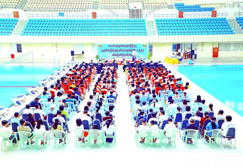 အားကစားနှင့် လူငယ်ရေးရာဝန်ကြီးဌာန အားကစားနှင့်ကာယပညာဦးစီးဌာန ဝဏ္ဏသိဒ္ဓိရေကူးကန် နွေရာသီအခြေခံရေကူး သင်တန်းအမှတ်စဉ် (၁/၂၀၂၄) သင်တန်းဆင်းပွဲအခမ်းအနားကို ယနေ့နံနက် ၈ နာရီတွင် နေပြည်တော် ဝဏ္ဏသိဒ္ဓိအားကစားကွင်းရှိ ရေကူးကန်၌ ကျင်းပသည်။