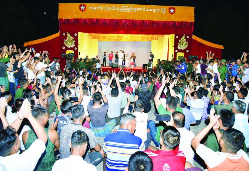 (၇၉) နှစ်မြောက်တပ်မတော်နေ့ စစ်ရေးပြ အခမ်းအနားတွင် ပါဝင်ချီတက် စစ်ရေးပြကြခဲ့ကြသည့် စစ်ကြောင်းများမှ အရာရှိ၊ စစ်သည်များအား ဂုဏ်ပြုဖျော်ဖြေပွဲကို ယနေ့ညပိုင်းတွင် နေပြည်တော်ရှိ စစ်ကြောရေးနှင့် တည်းခိုရေးစခန်း၌ ကျင်းပပြုလုပ်သည်။