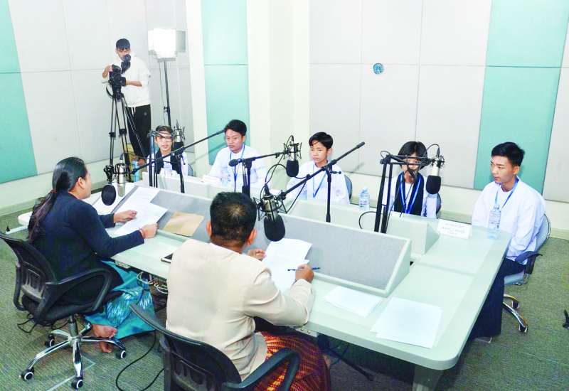 ၂၀၂၄ ခုနှစ် လူဦးရေနှင့် အိမ်အကြောင်းအရာ သန်းခေါင်စာရင်းကောက်ယူခြင်းဆိုင်ရာ အသိပညာပေး ရေဒီယိုဉာဏ်စမ်းပဟေဠိပြိုင်ပွဲကို ယမန်နေ့ နံနက် ၁၀ နာရီက နေပြည်တော် (တပ်ကုန်း) မြန်မာ့အသံနှင့် ရုပ်မြင်သံကြားရှိ Radio Dubbing Studio(1)တွင် ကျင်းပရာ နေပြည်တော် (ပျဉ်းမနား) အထက (၂)၊ နေပြည်တော် (လယ်ဝေး) အထက (၁)၊ နေပြည်တော် (ဇေယျာသီရိ) အထက (၁)၊ နေပြည်တော် (တပ်ကုန်း) အထက (၁)နှင့် အထက (၂)တို့မှ ကျောင်းသား ကျောင်းသူ ငါးဦးတို့ ပါဝင်ယှဉ်ပြိုင်ကြသည်။