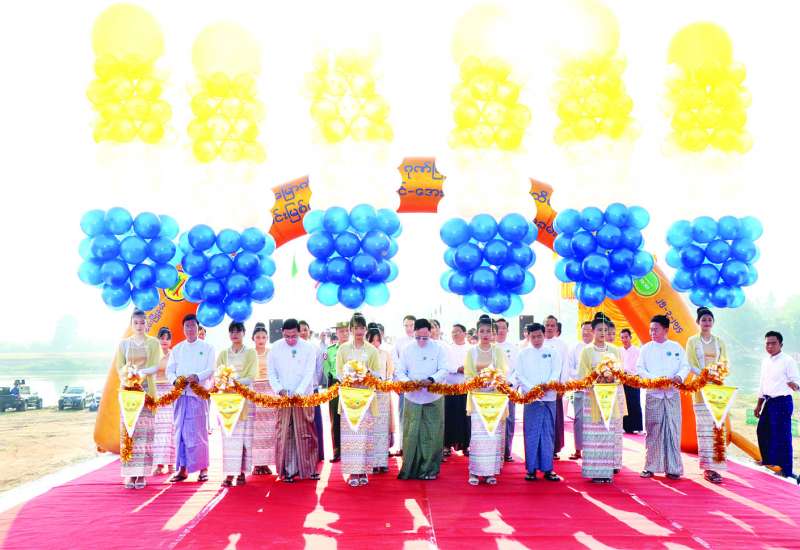 (၇၉) နှစ်မြောက် တပ်မတော်နေ့ကို ကြိုဆိုဂုဏ်ပြုသောအားဖြင့် ပြည်ထောင်စုနယ်မြေ လယ်ဝေးမြို့နယ် ရုံးပင် - အေးချမ်းသာ စစ်တောင်းမြစ်ကူးတံတားဖွင့်ပွဲအခမ်းအနားကို ယနေ့နံနက်ပိုင်းက ကျင်းပရာ သမဝါယမနှင့် ကျေးလက်ဖွံ့ဖြိုးရေးဝန်ကြီးဌာန ပြည်ထောင်စုဝန်ကြီး ဦးလှမိုး၊ ဆောက်လုပ်ရေးဝန်ကြီးဌာန ပြည်ထောင်စုဝန်ကြီး ဦးမျိုးသန့်၊ နေပြည်တော်ကောင်စီဥက္ကဋ္ဌ ဦးသန်းထွန်းဦး၊ ဒုတိယဝန်ကြီးများ၊ နေပြည်တော်ကောင်စီဝင်များနှင့် တာဝန်ရှိသူများ တက်ရောက်ကြသည်။