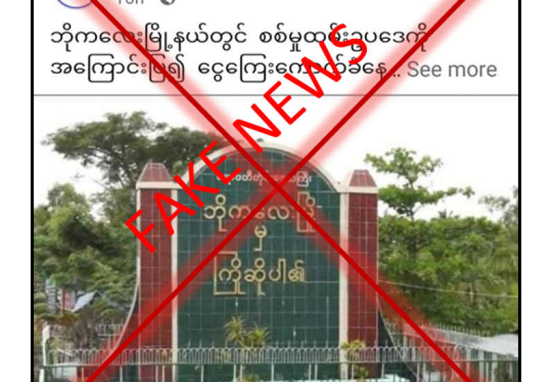ဧရာဝတီတိုင်းဒေသကြီး၊ ဘိုကလေးမြို့နယ်တွင် စစ်မှုထမ်းခြင်းမပြုလိုသည့် ရပ်ကွက်၊ ကျေးရွာအုပ်စုအားလုံးရှိ အသက်ပြည့်မီသည့် လူငယ်များအားလုံး ငွေ ၅၀၀၀၀ ပေးနေရကြောင်း ကောလာဟလ သတင်းတု၊ သတင်းအမှားများကို တရားမဝင်ပြည်ဖျက်မီဒီယာများက မဟုတ်မမှန် ရေးသားဖြန့်ဝေနေသည်ကို တွေ့ရှိရသည်။