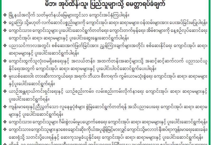 မြို့နယ်အလိုက် သတ်မှတ်နယ်မြေများတွင်သာ ကျောင်းအပ်နှံကြပါရန်။