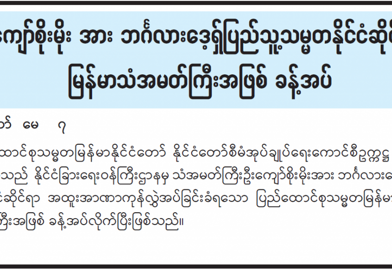 ကျန်းမာရေးဝန်ကြီးဌာန အစားအသောက်နှင့် ဆေးဝါးကွပ်ကဲရေးဦးစီးဌာနသည် စားသုံးသူပြည်သူများ အရည်အသွေးကောင်းမွန်ပြီး ဘေးအန္တရာယ်ကင်းသော အစားအသောက်များ စားသုံးနိုင်စေရန်အတွက် စားသောက်ကုန်များကို ဈေးကွက်မတင်မီစိစစ်ခြင်း၊ ဈေးကွက်တင်ပြီးနောက် ဈေးကွက်ထောက်လှမ်းစစ်ဆေးခြင်းစသည့် အစားအသောက်ဘေးအန္တရာယ် ဖြစ်ပေါ်နိုင်မှုများအား အစဉ်တစိုက် ကြိုတင်စိစစ်ဆောင်ရွက်လျက်ရှိပါသည်။ စားသုံးသူပြည်သူအများအဖို့ စားသောက်ကုန်များကို ယုံကြည်စိတ်ချစွာ ရွေးချယ်ဝယ်ယူစားသုံးနိုင်ရန်အတွက် “အသင့်ထုပ်ပိုးထားသော အစားအသောက်များအမှတ် တံဆိပ်ကပ်ခြင်းဆိုင်ရာအမိန့်”အား မြန်မာနိုင်ငံအစားအသောက်နှင့် ဆေးဝါးအာဏာပိုင်အဖွဲ့၏ ၂၀-၁-၂၀၂၂ ရက်စွဲပါ အမိန့်ကြော်ငြာစာ အမှတ် (၈/၂၀၂၂) ဖြင့် ထုတ်ပြန်ကြေညာခဲ့ပြီးဖြစ်သည့်အပြင် စားသောက်ကုန်များ၏ အမှတ်တံဆိပ်များပေါ်တွင် စားသောက်ကုန်သတ်မှတ်နံပါတ် (Food Product Code) များ ဖော်ပြနိုင်ရေးအတွက် စားသောက်ကုန်မှတ်တမ်းတင်ခြင်း (Food Product Notification) ကို လျှောက်ထားနိုင်ရန်ဖြစ်ပါသည်။
