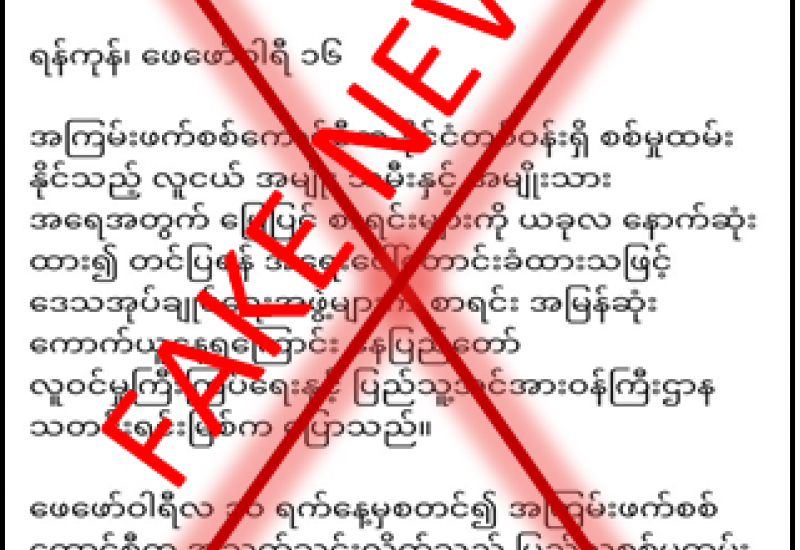 ရန်ကုန်၊ မန္တလေး အပါအဝင် တစ်နိုင်ငံလုံးမှ လက်ရှိချက်ချင်းစစ်မှုထမ်းရန် ဆင့်ခေါ်နိုင်သော လူဦးရေ ကျား၊ မစာရင်းကို အမြန်ဆုံးကောက်ယူခိုင်းထားကြောင်း၊ ပြည်နယ်/တိုင်းဒေသကြီးများရှိ ရပ်ကွက်အုပ်ချုပ်ရေးအဖွဲ့များက စစ်မှုထမ်းရန်အကျုံး ဝင်သောလူငယ်များကို ရှောင်တိမ်းခြင်းမရှိစေရန်အတွက် မိဘ၊ ဆွေမျိုး၊ မောင်နှမများကို ထောင်ဒဏ် ၃ နှစ်မှ ၅ နှစ် အထိချမှတ်နိုင်ကြောင်း ဝန်ခံကတိပြုလက်မှတ်များ ရေးထိုးခိုင်းနေကြောင်း မဟုတ်မမှန်သတင်းများကို တရားမဝင် ပြည်ဖျက်မီဒီယာ Khit Thit က လုပ်ကြံဝါဒဖြန့်ရေးသားလျက်ရှိပါသည်။
