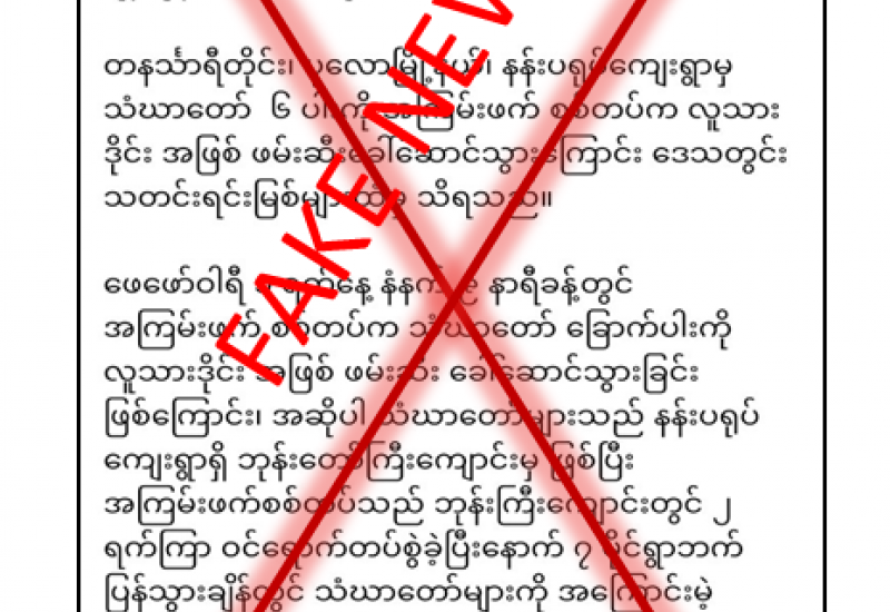 တနင်္သာရီတိုင်းဒေသကြီး၊ ပုလောမြို့နယ်၊ နန်းပရုပ်ကျေးရွာဘုန်းတော်ကြီးကျောင်းတွင် လုံခြုံရေးတပ်ဖွဲ့ဝင်များက ၂ ရက်ကြာ ဝင်ရောက်တပ်စွဲခဲ့ပြီးနောက် ပြန်သွားချိန် ဖေဖော်ဝါရီ ၁ ရက်နေ့တွင် အဆိုပါဘုန်းကြီးကျောင်းမှ သံဃာတော် ၆ ပါးကို လူသားဒိုင်းအဖြစ် ဖမ်းဆီးခေါ်ဆောင်သွားခဲ့ကြောင်း သတင်းတု၊ သတင်းအမှားများကို တရားမဝင်ပြည်ဖျက်မီဒီယာ Khit Thit က လူမှုကွန်ရက်ပေါ်တွင် မဟုတ်မမှန်လုပ်ကြံရေးသားဖြန့်ဝေနေသည်ကို တွေ့ရှိရသည်။