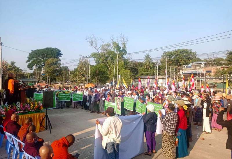 ရှမ်းပြည်နယ်တောင်ပိုင်း၊ လင်းခေးမြို့နယ်တွင် ဗုဒ္ဓဘာသာဝင်များ အထွတ်အမြတ်ထားရာ စေတီပုထိုးများ၊ ဗုဒ္ဓဆင်းတုတော်များအား ဖျက်ဆီးစော်ကားနေသည့် အကြမ်းဖက်သောင်းကျန်းသူများ၊ သာသနာဖျက်မိစ္ဆာများအား ရှုတ်ချကန့်ကွက်သည့် ဆန္ဒထုတ်ဖော်ပွဲကို ယမန်နေ့နံနက် ၈ နာရီက မြို့နယ်ပြည်ငြိမ်းအေးအားကစားကွင်း၌ ကျင်းပခဲ့သည်။