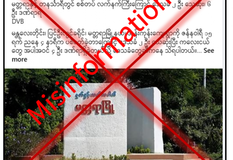 မန္တလေးတိုင်းဒေသကြီး၊ မတ္တရာမြို့နယ်၊ အုန်းကုန်းကျေးရွာတွင် ဇန်နဝါရီ ၁၅ ရက် ညနေပိုင်းက တိုက်ပွဲဖြစ်ပွားခြင်းမရှိဘဲ တပ်မတော်ကပစ်ခတ်သည့် လက်နက်ကြီးကျည်ကြောင့် ဒေသခံ ၂ ဦး သေဆုံးပြီး ကလေးငယ်တွေ အပါအဝင် ၆ ဦး ဒဏ်ရာရှိခဲ့သည်ဟု မဟုတ်မမှန်သတင်းမှားကို လူမှုကွန်ရက်စာမျက်နှာတွင် အကြမ်းဖက်အားပေးမီဒီယာ DVB မှ ရေးသားဖြန့်ဝေလျက်ရှိသည်ကို တွေ့ရှိရပါသည်။