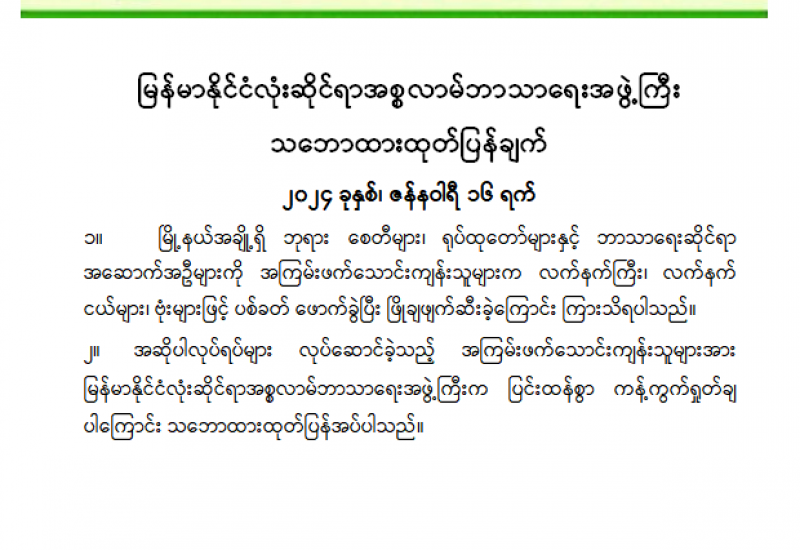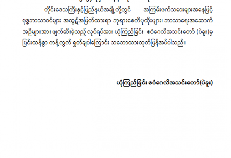 ၁။ တိုင်းဒေသကြီးနှင့် ပြည်နယ်အချို့ရှိ ဘုရား၊ စေတီ၊ ပုထိုးများ၊ ဘာသာရေးဆိုင်ရာ အဆောက်အဦများနှင့် ဘုရားရှိခိုးကျောင်းများကို အကြမ်းဖက်သောင်းကျန်းသူများက ဗုံးများ၊ လက်နက်ကြီးများဖြင့် ပစ်ခတ်၊ ဖြိုချ ဖျက်ဆီးခြင်းများလုပ်ဆောင်နေကြောင်းသိရှိရပါသည်။