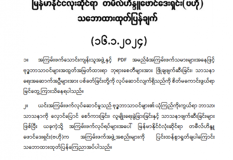 အကြမ်းဖက်အုပ်စုအဖြစ် ကြေညာထားသော CRPH ၊ NUG နှင့် ယင်းတို့၏ လက်ဝေခံအဖွဲ့အစည်းများ၊ ယင်းတို့နှင့်ဆက်နွှယ်နေသောအဖွဲ့အစည်းများ၊ လူပုဂ္ဂိုလ်များသည် နိုင်ငံတော်တည်ငြိမ်အေးချမ်းရေးကို ပျက်ပြားစေရန်နှင့် ပြည်သူလူထုကို အကြောက်တရားများဖြစ်ပေါ်စေပြီး အစိုးရယန္တရားများ ပျက်ပြားစေရန်ရည်ရွယ်လျက် လှုံ့ဆော်ခြင်း၊ ဝါဒဖြန့်ခြင်း၊ ခြိမ်းခြောက်ခြင်းများကို လူမှုကွန်ရက်များမှတစ်ဆင့် နည်းမျိုးစုံဖြင့် ပြုလုပ်လျက်ရှိပါသည်။