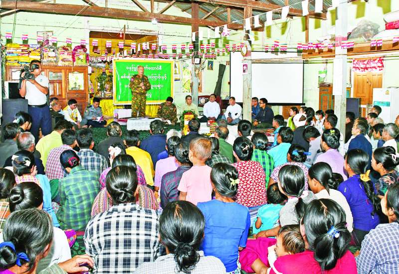နေပြည်တော်ကောင်စီအဖွဲ့ဝင် ဗိုလ်မှူးကြီးမင်းနောင်ဦးစီးသည့် ဌာနဆိုင်ရာများ ပါဝင်သော ပူးပေါင်းအဖွဲ့သည် နယ်မြေဒေသ တည်ငြိမ်အေးချမ်းရေး၊ လုံခြုံရေး၊ တရားဥပဒေစိုးမိုးရေး၊ ပညာရေး၊ ကျန်းမာရေးနှင့် ဒေသဖွံ့ဖြိုးရေး လုပ်ငန်းများကို ကွင်းဆင်းဆောင်ရွက်ရန် ယနေ့တွင် နေပြည်တော် ဇေယျာသီရိမြို့နယ် ကျောက်ဖျာကျေးရွာအုပ်စု ရွာသစ်ကုန်းကျေးရွာသို့ ရောက်ရှိကြပြီး ဒေသဖွံ့ဖြိုးရေးလုပ်ငန်းများကို ဆောင်ရွက်ကြသည်။
