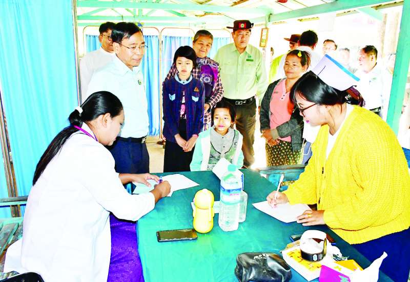 နေပြည်တော်ကောင်စီဥက္ကဋ္ဌ ဦးသန်းထွန်းဦးသည် နေပြည်တော်ကောင်စီအဖွဲ့ဝင်များ၊ တာဝန်ရှိသူများနှင့်အတူ ယနေ့နံနက်ပိုင်းတွင် နေပြည်တော် ကုသရေးဦးစီးဌာနက ဦးဆောင်၍ ပျဉ်းမနား ပြည်သူ့ ဆေးရုံကြီး ခုတင် ၂၀၀ နှင့် တပ်ကုန်းမြို့ပြည်သူ့ဆေးရုံ ခုတင် ၁၀၀ တို့က အထူးကု ဆရာဝန်များ ပါဝင်သောအဖွဲ့က ပြည်ထောင်စုနယ်မြေ နေပြည်တော် တပ်ကုန်း မြို့နယ်သရက်ပင်ကျေးရွာ ဓမ္မရက္ခိတဘုန်းတော်ကြီးကျောင်း၌ ညောင်လွန့်ကျေးရွာအုပ်စု၊ ကြိုးကြာအင်းကျေးရွာအုပ်စု၊ သစ်ဆိမ့်ပင်ကျေးရွာအုပ်စု၊ အုန်းပင်ကျေးရွာအုပ်စုနှင့် တဲမြင့်ကျေးရွာအုပ်စုတို့မှ ဒေသခံပြည်သူများကို ကွင်းဆင်း၍ အခမဲ့ကျန်းမာရေး စောင့်ရှောက်ပေးနေမှုကို သွားရောက်ကြည့်ရှုအားပေးသည်။