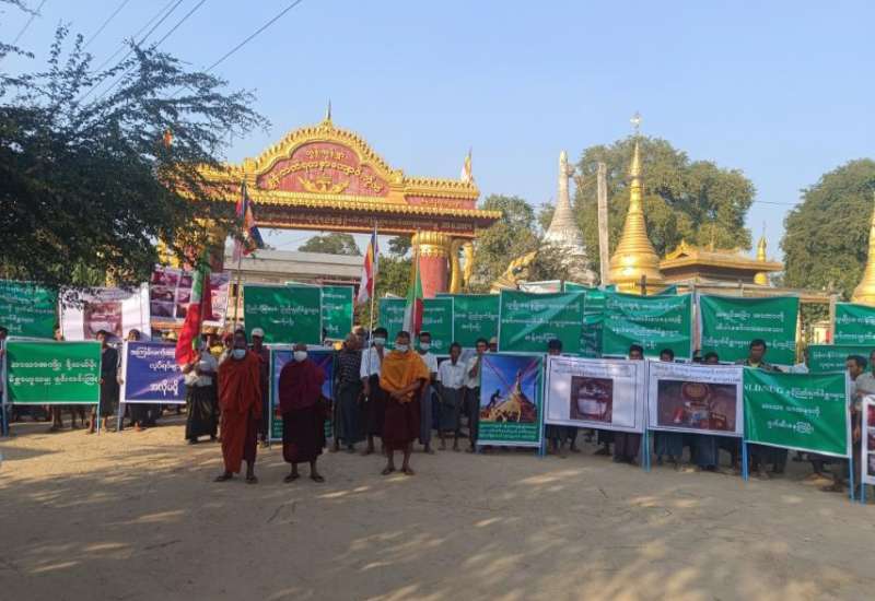 စစ်ကိုင်းတိုင်းဒေသကြီး ရွှေဘိုခရိုင်၊ရွှေဘိုမြို့နယ် ဘုတ်ကုန်းကျေးရွာ၌၊ ဗုဒ္ဓဘာသာဝင်များအတွက် အထွဋ်အမြတ်ထားရာ စေတီပုထိုးများ၊ ဗုဒ္ဓဆင်းတုတော်များအားဖျက်ဆီး စော်ကားနေ သည့် အကြမ်းဖက်သောင်းကျန်းသူများနှင့် သာသနာဖျက်မိစ္ဆာများအား ကန့်ကွက်ရှုတ်ချပွဲကို ယမန်နေ့ ညနေ(၃)နာရီ အချိန်က ကျင်းပပြုလုပ်ခဲ့သည်။