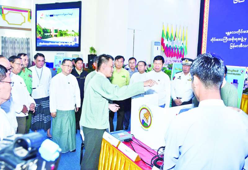 ပြည်ထောင်စုရွေးကောက်ပွဲကော်မရှင်က မန္တလေးတိုင်းဒေသကြီး၌ မြန်မာအီလက်ထရောနစ် မဲပေးစက် အသုံးပြုမဲပေးခြင်းနှင့်စပ်လျဉ်း၍ ရှင်းလင်းပြသခြင်းနှင့် လက်တွေ့သရုပ်ပြ စမ်းသပ်မဲပေးခြင်းကို ယနေ့ နံနက် ၁၀ နာရီက မန္တလေးမြို့တော်စည်ပင်သာယာရေးကော်မတီ မြို့တော်ခန်းမ၌ကျင်းပရာ မန္တလေးတိုင်းဒေသကြီး ဝန်ကြီးချုပ်ဦးမျိုးအောင်၊ ပြည်ထောင်စုရွေးကောက်ပွဲ ကော်မရှင်အဖွဲ့ဝင် ဦးသန်းအောင်ကျော်နှင့် မန္တလေးတိုင်းဒေသကြီး အစိုးရအဖွဲ့ဝင်ဝန်ကြီးများ၊ မန္တလေးတိုင်းဒေသကြီး အစိုးရအဖွဲ့ရုံးမှအရာထမ်း၊ အမှုထမ်းများ၊ တိုင်းဒေသကြီးအဆင့် ဌာနဆိုင်ရာများ၊ နိုင်ငံရေးပါတီ ခြောက်ပါတီမှပါတီဥက္ကဋ္ဌနှင့် အမှုဆောင်များ တက်ရောက်ကြသည်။