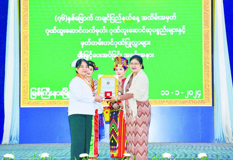 (၇၆)နှစ်မြောက် ကချင်ပြည်နယ်နေ့ အခမ်းအနားများ တက်ရောက်ရန် မြစ်ကြီးနားမြို့သို့ ရောက်ရှိနေသော နိုင်ငံတော်စီမံအုပ်ချုပ်ရေးကောင်စီအဖွဲ့ဝင် ဒေါ်ဒွဲဘူသည် ဇန်နဝါရီ ၁၁ ရက် မွန်းလွဲ ၂ နာရီတွင် မြစ်ကြီးနားမြို့ ပြည်သူ့အားကစားကွင်းအတွင်းရှိ မိုးလုံလေလုံအားကစားခန်းမ၌ ကျင်းပပြုလုပ်သည့် (၇၆)နှစ်မြောက် ကချင်ပြည်နယ်နေ့ အထိမ်းအမှတ်ဂုဏ်ထူးဆောင်လက်မှတ်၊ ဂုဏ်ထူးဆောင်ဆုပစ္စည်းများနှင့် မှတ်တမ်းတင်ဂုဏ်ပြုလွှာရရှိသူများအား ဆုများအပ်နှင်းချီးမြှင့်ပွဲအခမ်းအနား တတိယနေ့သို့ တက်ရောက်သည်။