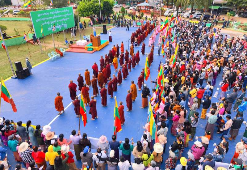 စစ်ရေးဖြင့်သက်ဆိုင်ခြင်းမရှိသည့် ဘုရားစေတီပုထိုးများ၊ ဗုဒ္ဓဆင်းတုတော်များအား ဖျက်ဆီးစော်ကားနေသည့် အကြမ်းဖက်သောင်းကျန်းသူများအား ကန့်ကွက်ရှုတ်ချပွဲကို ယနေ့မွန်းလွဲပိုင်းတွင် ရှမ်းပြည်နယ်(မြောက်ပိုင်း)၊ လားရှိုးမြို့ရှိ လွတ်လပ်ရေး ပန်းခြံကျောက်တိုင်ကွင်း၌ ကျင်းပပြုလုပ်သည်။