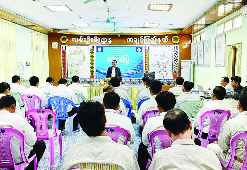 ဆောက်လုပ်ရေးဝန်ကြီးဌာန ပြည်ထောင်စုဝန်ကြီးဦးမျိုးသန့်သည် ယမန်နေ့က ကချင်ပြည်နယ်လမ်းဦးစီးဌာန ညွှန်ကြားရေးမှူးရုံးတွင် ကချင်ပြည်နယ်အတွင်းရှိ အဆောက်အဦ၊ လမ်း၊ တံတား၊ မြို့ပြနှင့်အိမ်ရာဖွံ့ဖြိုးရေးဦးစီးဌာနနှင့် တည်ဆောက်ရေးအထူးအဖွဲ့များတွင် တာဝန်ထမ်းဆောင်နေသော ဝန်ထမ်းများနှင့်တွေ့ဆုံသည်။