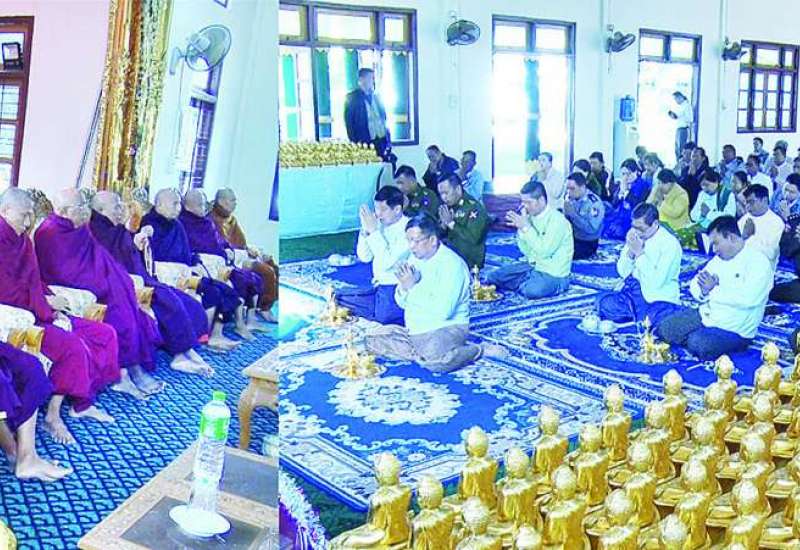 နိုင်ငံတော်စီမံအုပ်ချုပ်ရေးကောင်စီအဖွဲ့ဝင်၊ ဒုတိယဝန်ကြီးချုပ်နှင့် ကာကွယ်ရေးဝန်ကြီးဌာန ပြည်ထောင်စုဝန်ကြီး ဗိုလ်ချုပ်ကြီးတင်အောင်စန်းသည် နိုင်ငံတော်ကောင်စီအဖွဲ့ဝင်များ၊ ပြည်ထောင်စုဝန်ကြီးများ၊ ပြည်နယ်ဝန်ကြီးချုပ်၊ တိုင်းမှူးတို့နှင့်အတူ ယနေ့နံနက် ၈ နာရီက မြစ်ကြီးနားမြို့ ရှမ်းစုမြောက်ရပ်ကွက်အတွင်းရှိ ဓမ္မရက္ခိတဝန်းသိုကျောင်းတိုက်၌ မြစ်ကြီးနားမြို့နယ်အတွင်းရှိ ဗုဒ္ဓဘာသာဘုန်းတော်ကြီးကျောင်းများအတွက် ဆန်၊ ဆီနှင့် အလှူငွေများ လှူဒါန်းကြသည်။