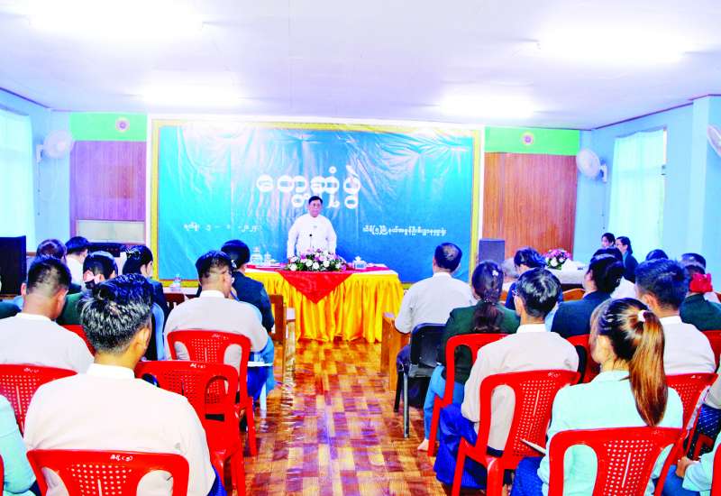 ဟိုတယ်နှင့် ခရီးသွားလာရေးဝန်ကြီးဌာန ပြည်ထောင်စုဝန်ကြီး ဒေါက်တာသက်သက်ခိုင်သည် ယနေ့နံနက်ပိုင်းက ခရီးသွားလုပ်ငန်းဆိုင်ရာ ဘာသာရပ်များ သင်ကြားပို့ချနေသည့် သင်တန်းကျောင်းများမှ တာဝန်ရှိသူများကို ဝန်ကြီးဌာန၏ နီလာခန်းမမှ အွန်လိုင်းစနစ်ဖြင့် တွေ့ဆုံသည်။