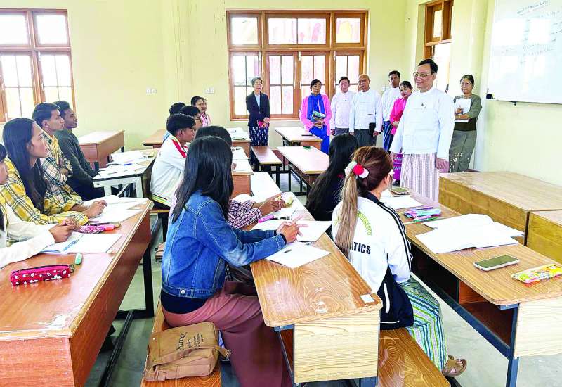 ပညာရေးဝန်ကြီးဌာန ဒုတိယဝန်ကြီး ဒေါက်တာဇော်မြင့်သည် ယနေ့နံနက်ပိုင်းတွင် စစ်ကိုင်းပညာရေးတက္ကသိုလ်သို့ရောက်ရှိပြီး စာသင်ခန်းများတွင် ကျောင်းသားကျောင်းသူများ အေးချမ်းစွာပညာသင်ယူနေမှုကို လှည့်လည်ကြည့်ရှုအားပေးသည်။