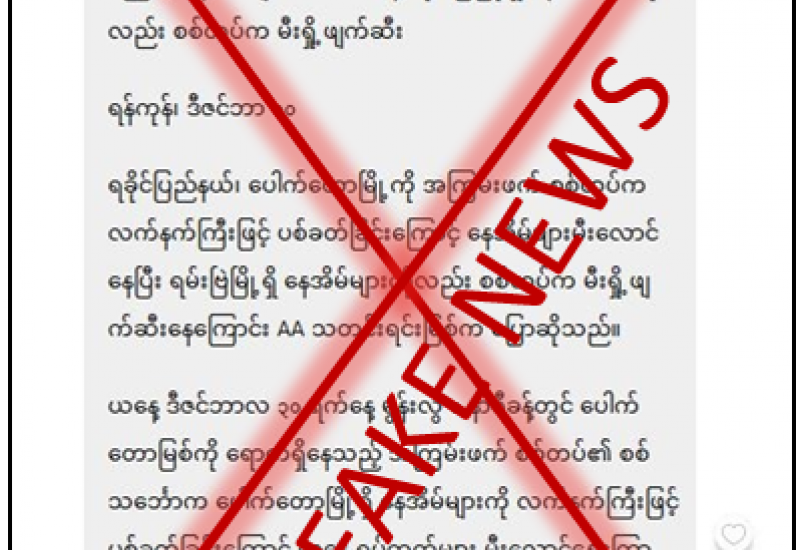 ရခိုင်ပြည်နယ်၊ ပေါက်တောမြို့ကို တပ်မတော်က လက်နက်ကြီးဖြင့် ပစ်ခတ်ခြင်းကြောင့် နေအိမ်များမီးလောင်နေပြီး ရမ်းဗြဲမြို့ရှိ နေအိမ်များကိုလည်း တပ်မတော်က မီးရှို့ဖျက်ဆီးနေကြောင်း တရားမဝင်မီဒီယာတစ်ခုဖြစ်သည့် Khit Thit Media က သတင်းတု၊ သတင်းအမှားများကို လူမှုကွန်ရက်စာမျက်နှာပေါ်တွင် ရေးသားဖြန့်ဝေလျက်ရှိသည်ကို တွေ့ရှိရသည်။