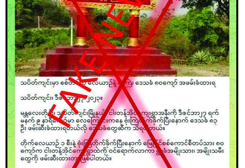 ပဲခူးတိုင်းဒေသကြီး ကျောက်တံခါးမြို့နယ် ပျဉ်းမပင်ရွာကို ဒီဇင်ဘာ ၂၇ ရက်က တပ်မတော်က လက်နက်ကြီးပစ်ခတ်မှုကြောင့် ပြည်သူတစ်ဦး သေဆုံးပြီး သုံးဦး ထိခိုက်ဒဏ်ရာရရှိခဲ့ကြောင်းနှင့် ရေတာရှည်မြို့နယ် သာယာကုန်းကျေးရွာနှင့် ဒိုးတန်းကျေးရွာများတွင် အကြမ်းဖက်သောင်းကျန်းသူများနှင့် လုံခြုံရေးတပ်ဖွဲ့ဝင်များ တိုက်ပွဲဖြစ်ပွားခဲ့ပြီး လုံခြုံရေးတပ်ဖွဲ့ဝင်များက ကျေးရွာများအတွင်းသို့ လက်နက်ကြီးများပစ်ခတ်ခဲ့မှုကြောင့် ပြည်သူတစ်ဦး သေဆုံးခဲ့ကြောင်း မဟုတ်မမှန် သတင်းတု၊ သတင်းအမှားများကို Khit Thit Media က လူမှုကွန်ရက်စာမျက်နှာများတွင် ရေးသားဖြန့်ဝေလျက်ရှိသည်ကို တွေ့ရှိရသည်။