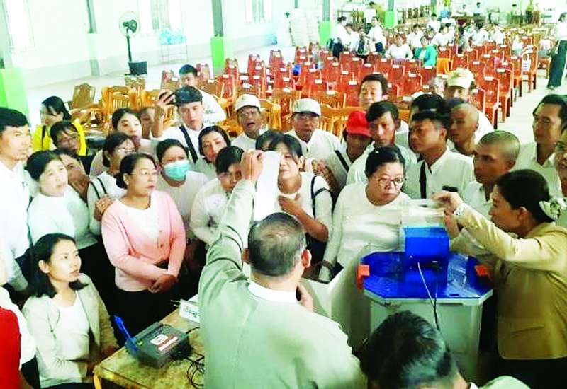 ရန်ကုန်တိုင်းဒေသကြီး နယ်မြေမဲဆန္ဒရှင်ပြည်သူများ မြန်မာအီလက်ထရောနစ်မဲပေးစက်ဖြင့် လက်တွေ့စမ်းသပ်မဲပေးလေ့လာခြင်းအစီအစဉ်ကို ဒီဇင်ဘာ ၄ ရက်မှစ၍ ခရိုင်နယ်မြေများအလိုက် ဆောင်ရွက်လျက်ရှိရာ ယနေ့တွင် မှော်ဘီမြို့နယ် ရပ်ကွက်၊ ကျေးရွာ ၂၂ ခုမှ ပြည်သူ ၅၆၆ ဦး၊ သာကေတမြို့နယ် ရပ်ကွက်ငါးခုမှ ပြည်သူ ၄၆၀ ၊ ဗိုလ်တထောင်မြို့နယ် ရပ်ကွက်ခြောက်ခုမှ ပြည်သူ ၄၁၁ ဦး၊ ကမာရွတ်မြို့နယ် ရပ်ကွက် ၁၀ ခုမှ ပြည်သူ ၄၈၁ ဦး တက်ရောက်၍ လက်တွေ့စမ်းသပ်မဲပေးလေ့လာမှုများ ဆောင်ရွက်သည်။