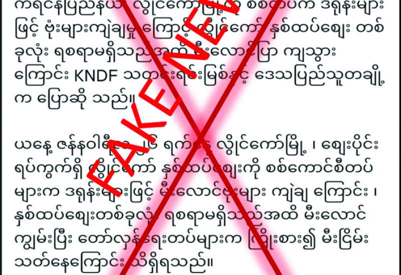 ကယားပြည်နယ် လွိုင်ကော်မြို့ ဈေးပိုင်းရပ်ကွက်ရှိ နှစ်ထပ်ဈေးကို ယနေ့နံနက်ပိုင်းတွင် လုံခြုံရေးတပ်ဖွဲ့ဝင်များက ဒရုန်းများဖြင့် မီးလောင်ဗုံးများကြဲချမှုကြောင့် မီးလောင်မှုဖြစ်ပွားခဲ့ခြင်းဖြစ်ကြောင်း သတင်းတု၊ သတင်းအမှားများကို လူမှုကွန်ရက်ပေါ်တွင် မဟုတ်မမှန်ရေးသားဖြန့်ဝေနေသည်ကို တွေ့ရှိရသည်။