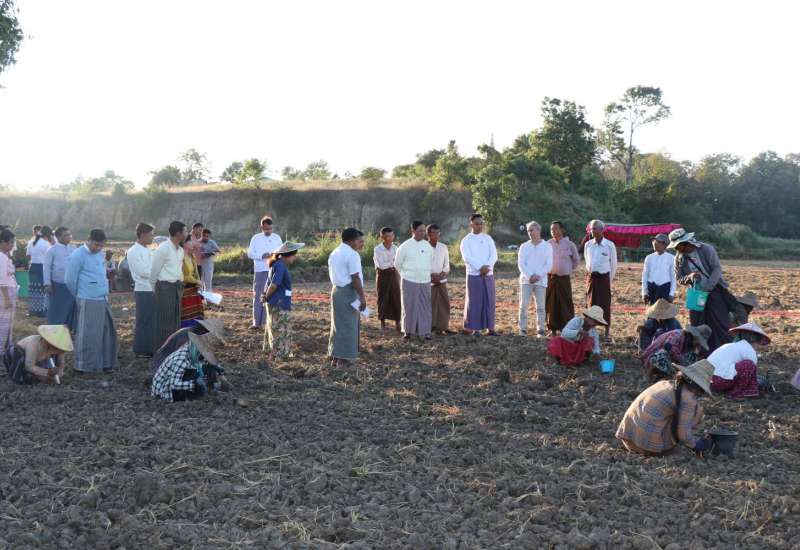 သမဝါယမနှင့် ကျေးလက်ဖွံ့ဖြိုးရေးဝန်ကြီးဌာန ပြည်ထောင်စုဝန်ကြီးဦးလှမိုးသည် ယနေ့နံနက်ပိုင်းတွင် အမြဲတမ်းအတွင်းဝန်၊ ညွှန်ကြားရေးမှူးချုပ်များ၊ တာဝန်ရှိသူများနှင့်အတူ ရုရှားဖက်ဒရေးရှင်းနိုင်ငံ ရော့စ်ကွန်ကရက်ရင်းနှီးမြှုပ်နှံမှုရန်ပုံငွေအဖွဲ့နှင့် ပူးပေါင်းဆောင်ရွက်လျက်ရှိသော လယ်ဝေးမြို့နယ် မြွေရိုးကျောင်းစုကျေးရွာအုပ်စု ရုံးတောကျေးရွာ၌ ရွှေဝါထွန်း (၂) စိုက်ပျိုးထုတ်လုပ်ရေးသမဝါယမအသင်းလီမိတက် အသင်းပိုင်မြေ ၁၅ ဧကပေါ်တွင် ဆီထွက်သီးနှံနေကြာ စမ်းသပ်စိုက်ပျိုးနေမှုကို ကြည့်ရှုစစ်ဆေးသည်။