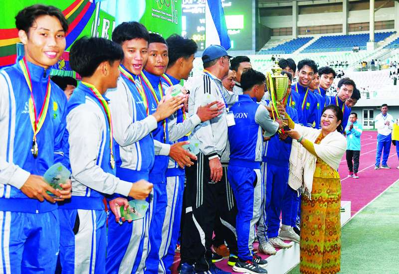 ၂၀၂၃-၂၀၂၄ ပညာသင်နှစ် အခြေခံပညာကျောင်းသား အားကစားပွဲတော် ဘောလုံးပြိုင်ပွဲ (အမျိုးသား) ဗိုလ်လုပွဲနှင့် ဆုချီးမြှင့်ပွဲအခမ်းအနားကို ယနေ့မွန်းလွဲပိုင်းတွင် နေပြည်တော်ရှိ ဝဏ္ဏသိဒ္ဓိဘောလုံးကွင်း၌ကျင်းပရာ နိုင်ငံတော်စီမံအုပ်ချုပ်ရေးကောင်စီဝင်များ တက်ရောက်ကြည့်ရှုအားပေးပြီး ဆုများပေးအပ်ချီးမြှင့်ကြသည်