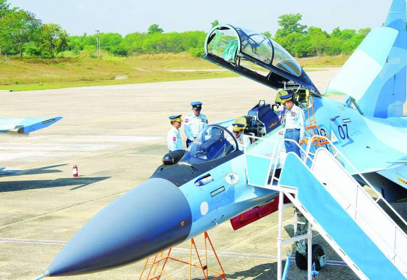 ပြည်ထောင်စုသမ္မတမြန်မာနိုင်ငံတော်၊ တပ်မတော်(လေ)ဖွဲ့စည်းတည်ထောင်မှု (၇၆)နှစ်မြောက် နှစ်ပတ်လည်နေ့အထိမ်းအမှတ် လေယာဉ်များတပ်တော်ဝင်ခြင်းအခမ်းအနားကို ယနေ့နံနက်ပိုင်းတွင် နေပြည်တော်လေတပ်စခန်း၌ ကျင်းပပြုလုပ်ရာ နိုင်ငံတော်စီမံအုပ်ချုပ်ရေးကောင်စီဥက္ကဋ္ဌ တပ်မတော်ကာကွယ်ရေးဦးစီးချုပ် ဗိုလ်ချုပ်မှူးကြီး မင်းအောင်လှိုင် တက်ရောက်ချီးမြှင့်သည်။