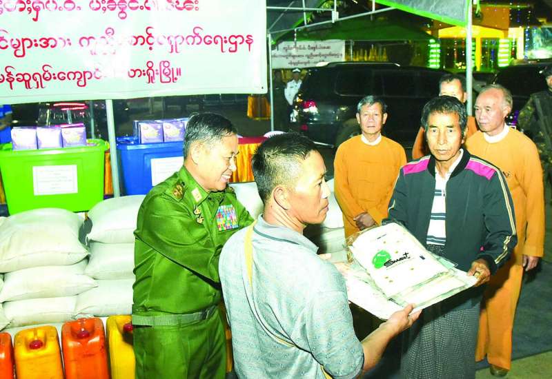 နိုင်ငံတော်စီမံအုပ်ချုပ်ရေးကောင်စီ ဒုတိယဥက္ကဋ္ဌ ဒုတိယတပ်မတော်ကာကွယ်ရေးဦးစီးချုပ်၊ ကာကွယ်ရေးဦးစီးချုပ်(ကြည်း) ဒုတိယဗိုလ်ချုပ်မှူးကြီး စိုးဝင်းသည် ယနေ့ညနေပိုင်းတွင် ဇနီး ဒေါ်သန်းသန်းနွယ်၊ ကာကွယ်ရေးဦးစီးချုပ်ရုံးမှ တပ်မတော်အရာရှိကြီးများ၊ အရှေ့မြောက်တိုင်းစစ်ဌာနချုပ် တိုင်းမှူးနှင့် အဖွဲ့ဝင်များလိုက်ပါ၍ လားရှိုးမြို့၊ သီရိမင်္ဂလာမန်ဆူရှမ်းကျောင်းတိုက်တွင် ရောက်ရှိနေသည့် ယာယီနေရပ်စွန့်ခွာ ဒေသခံပြည်သူများအား သွားရောက်တွေ့ဆုံ အားပေးစကားပြောကြားသည်။