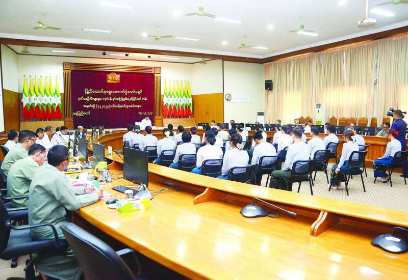 ဘဏ္ဍာရေးဆိုင်ရာကော်မရှင်အစည်းအဝေးအမှတ်စဉ် (၂/၂၀၂၃)ကို ယနေ့မွန်းလွဲပိုင်းတွင် နေပြည်တော်ရှိ နိုင်ငံတော်စီမံအုပ်ချုပ်ရေးကောင်စီဥက္ကဋ္ဌရုံး အစည်းအဝေးခန်းမ၌ကျင်းပရာ ဘဏ္ဍာရေးဆိုင်ရာကော်မရှင်ဥက္ကဋ္ဌ နိုင်ငံတော်စီမံအုပ်ချုပ်ရေးကောင်စီဥက္ကဋ္ဌ နိုင်ငံတော်ဝန်ကြီးချုပ် ဗိုလ်ချုပ်မှူးကြီး မင်းအောင်လှိုင် တက်ရောက်အမှာစကား ပြောကြားသည်။