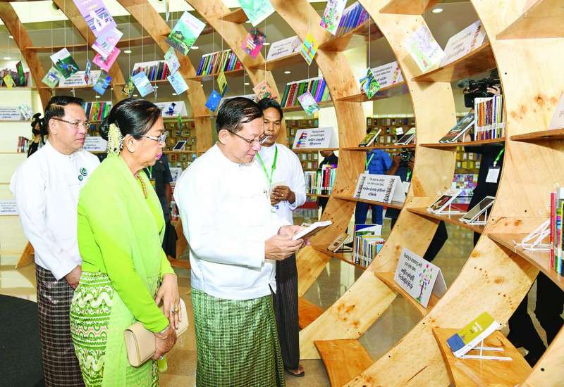 ၂၀၂၂ ခုနှစ်အတွက် အမျိုးသားစာပေ တစ်သက်တာဆု၊ အမျိုးသား စာပေဆုနှင့် စာပေဗိမာန်စာမူဆု ဆုနှင်းသဘင် အခမ်းအနားကို ယနေ့နံနက်ပိုင်းတွင် နေပြည်တော်ရှိ အပြည်ပြည်ဆိုင်ရာကွန်ဗင်းရှင်းဗဟို ဌာန-၂ ၌ ကျင်းပပြုလုပ်ရာ နိုင်ငံတော်စီမံအုပ်ချုပ်ရေး ကောင်စီဥက္ကဋ္ဌ နိုင်ငံတော်ဝန်ကြီးချုပ် ဗိုလ်ချုပ်မှူးကြီး မင်းအောင်လှိုင်နှင့်ဇနီး ဒေါ်ကြူကြူလှတို့ တက်ရောက်၍ စာပေဆုများ ပေးအပ်ချီးမြှင့်သည်။