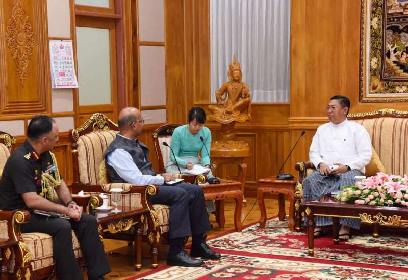 အမျိုးသားလုံခြုံရေးဆိုင်ရာအကြံပေးပုဂ္ဂိုလ်နှင့် နိုင်ငံတော်စီမံအုပ်ချုပ်ရေးကောင်စီဥက္ကဋ္ဌရုံးဝန်ကြီးဌာန(၄) ပြည်ထောင်စုဝန်ကြီး ဗိုလ်ချုပ်ကြီး မိုးအောင်သည် မြန်မာနိုင်ငံဆိုင် ရာအိန္ဒိယနိုင်ငံသံအမတ်ကြီး H.E. Mr. Vinay Kumar ဦးဆောင်သည့် ကိုယ်စားလှယ်အဖွဲ့အား ယနေ့မွန်းလွဲပိုင်းတွင် နေပြည်တော်ရှိ နိုင်ငံတော်စီမံအုပ်ချုပ်ရေးကောင်စီရုံး ဧည့်တွေ့ဆောင်၌ လက်ခံတွေ့ဆုံသည်။