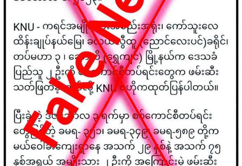 ကရင်ပြည်နယ် ရွှေကျင်မြို့နယ် မယ်ဝေါခီးကျေးရွာမှ ဒေသခံပြည်သူနှစ်ဦးအား ဒီဇင်ဘာ ၃ ရက်တွင် လုံခြုံရေးတပ်ဖွဲ့ဝင်များက ဖမ်းဆီးသတ်ဖြတ်ခဲ့သည်ဟု လူမှုကွန်ရက်စာမျက်နှာများပေါ်၌ မဟုတ်မမှန် လုပ်ကြံရေးသားဖြန့်ဝေလျက်ရှိသည်ကို တွေ့ရှိရသည်။