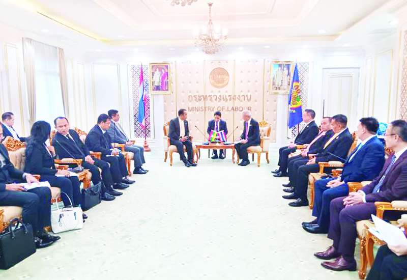 အလုပ်သမားဝန်ကြီးဌာန ပြည်ထောင်စုဝန်ကြီး ဦးမြင့်နောင် ဦးဆောင်၍ စီမံကိန်းနှင့် ဘဏ္ဍာရေးဝန်ကြီးဌာန၊ လူဝင်မှုကြီးကြပ်ရေးနှင့် ပြည်သူ့အင်အားဝန်ကြီးဌာနနှင့် အလုပ်သမားဝန်ကြီးဌာနတို့မှ အဆင့်မြင့်အရာရှိကြီးများပါဝင်သည့် ကိုယ်စားလှယ် (၆)ဦးတို့သည် ထိုင်းနိုင်ငံ အလုပ်သမားဝန်ကြီး၏ ဖိတ်ကြားမှုအရ အလုပ်သမားရေးရာကိစ္စရပ်များ ပူးပေါင်းဆောင်ရွက်နိုင်ရေး မြန်မာ-ထိုင်း နှစ်နိုင်ငံ အလုပ်သမားဝန်ကြီးများ တွေ့ဆုံဆွေးနွေးမှု ပြုလုပ်ရန် ယနေ့နံနက်ပိုင်းတွင် ရန်ကုန်မြို့မှ ထိုင်းနိုင်ငံသို့ လေကြောင်းခရီးဖြင့် ထွက်ခွာသွားရာ တာဝန်ရှိသူများက ရန်ကုန်အပြည်ပြည်ဆိုင်ရာ လေဆိပ်၌ ပို့ဆောင်နှုတ်ဆက်ကြသည်။