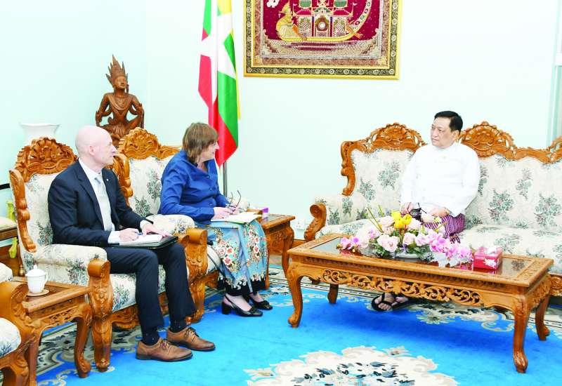 ပြည်ထောင်စုအစိုးရအဖွဲ့ရုံးဝန်ကြီးဌာန (၂) ပြည်ထောင်စုဝန်ကြီး ဦးကိုကိုလှိုင်သည် China Foundation for Rural Development (CFRD) ၏ အမှုဆောင်ညွှန်ကြားရေးမှူး Mr. Chen Hongtao ဦးဆောင်သည့် ကိုယ်စားလှယ်အဖွဲ့အား ယနေ့နံနက် ၁၁ နာရီခွဲတွင် နေပြည်တော်ရှိ ရုံးအမှတ် (၄၁) ပြည်ထောင်စုအစိုးရအဖွဲ့ရုံးဝန်ကြီးဌာန (၂) ၌ လက်ခံတွေ့ဆုံသည်။