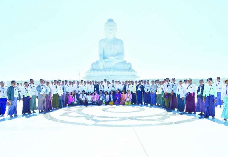 မန္တလေးတိုင်းဒေသကြီးအတွင်းရှိ ဘုရားစေတီများမှ ဘဏ္ဍာတော်ထိန်းဂေါပကအဖွဲ့ဝင် ၁၀၇ ဦးနှင့် ပဲခူးတိုင်းဒေသကြီးအတွင်းရှိ ဘုရားစေတီများမှ ဘဏ္ဍာတော်ထိန်း ဂေါပကအဖွဲ့ဝင် ၁၀၈ ဦးတို့သည် ယနေ့နံနက်ပိုင်းတွင် ပြည်ထောင်စုနယ်မြေ နေပြည်တော်ဒက္ခိဏသီရိမြို့နယ်ရှိ ဗုဒ္ဓဥယျာဉ်ဝတ္ထုကံတော်တွင် တည်ထားပူဇော်သည့် ကမ္ဘာပေါ်ရှိ ထိုင်တော်မူကျောက်ဆစ်ဗုဒ္ဓရုပ်ပွားတော်များအနက် ဉာဏ်တော်အမြင့်ဆုံးဖြစ်သည့် မာရဝိဇယဗုဒ္ဓရုပ်ပွားတော်မြတ်ကြီးအား လာရောက်ဖူးမြော်ကြည်ညိုကြသည်။