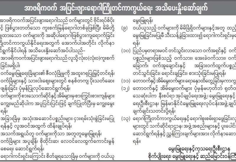 နိုင်ငံတော်အစိုးရအနေဖြင့် နိုင်ငံတော်တည်ငြိမ်အေးချမ်းရေးနှင့် တရားဥပဒေစိုးမိုးရေးကို အလေးထားဆောင်ရွက်လျက်ရှိပြီး အချို့သောပြည်ပနိုင်ငံသားများအနေဖြင့် နယ်စပ်ဒေသများမှတဆင့် မြန်မာနိုင်ငံအတွင်းသို့ တရားမဝင်ဝင်ရောက် နေထိုင်လျက်ရှိကြောင်းသိရှိရသည့်အတွက် အုပ်ချုပ်ရေးအဖွဲ့အစည်းများမှ လိုအပ်သည့် စိစစ်မှုများပြုလုပ်ကာ ဥပဒေနှင့်အညီ ဆောင်ရွက်နိုင်ရေး သက်ဆိုင်ရာနိုင်ငံများသို့ ပြန်လည်လွှဲပြောင်းပေးအပ်လျက်ရှိသည်။