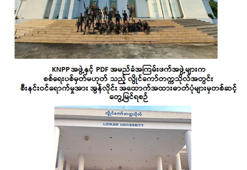 ၁။ KNPP အဖွဲ့နှင့် PDF အမည်ခံအကြမ်းဖက်အဖွဲ့များသည် နိုဝင်ဘာ ၁၃ ရက်နှင့် ၁၄ ရက်တို့တွင် စစ်ရေးနှင့်သက်ဆိုင်သောပစ်မှတ်မဟုတ်သည့် ကယားပြည်နယ်၊ လွိုင်ကော်တက္ကသိုလ်အား လက်နက်ကြီး၊ လက်နက်ငယ်များဖြင့် ရည်ရွယ်ချက်ရှိရှိ လာရောက်ပစ်ခတ်တိုက်ခိုက်ခဲ့ပြီး တက္ကသိုလ်တွင် လုံခြုံရေးတာဝန် ထမ်းဆောင်နေသည့် လုံခြုံရေးအဖွဲ့များကိုလည်း သာလွန်အင်အားများဖြင့် အလစ်အငိုက် ဝင်ရောက်တိုက်ခိုက်စီးနင်းခဲ့သည်။