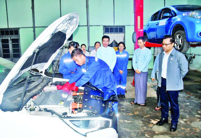 သိပ္ပံနှင့်နည်းပညာ ဝန်ကြီးဌာန ဒုတိယဝန်ကြီး ဒေါက်တာ အောင်ဇေယျသည် ယနေ့ညနေ ပိုင်းက ပြင်ဦးလွင်မြို့ရှိနည်းပညာ မြှင့်တင်ရေးနှင့် ပူးပေါင်းဆောင်ရွက်ရေးဦးစီးဌာန မော်တော်ယာဉ်နည်းပညာ သုတေသနဌာန၌ သုတေသနလုပ်ငန်းများ ဆောင်ရွက်နေမှု အခြေအနေများ၊ EV နည်းပညာ ပြန့်ပွားရေးနှင့် လူ့စွမ်းအားအရင်းအမြစ်ဖွံ့ဖြိုးရေး သင်တန်းများအတွက် သင်ထောက် ကူပစ္စည်းများ ဖြည့်တင်းထားမှု အခြေအနေများကို ကြည့်ရှု စစ်ဆေးသည်။
